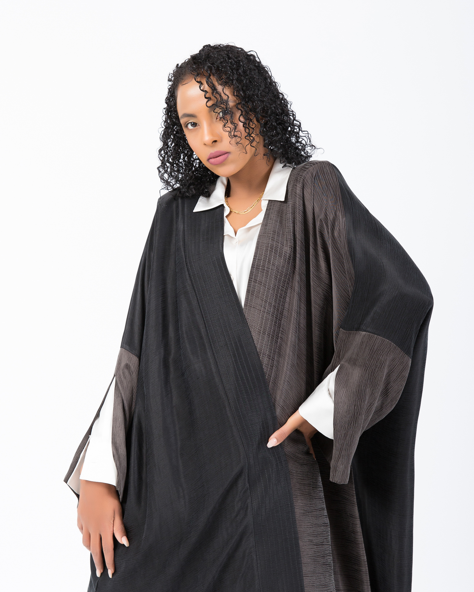 Loose cut, two side style abaya Grey and black