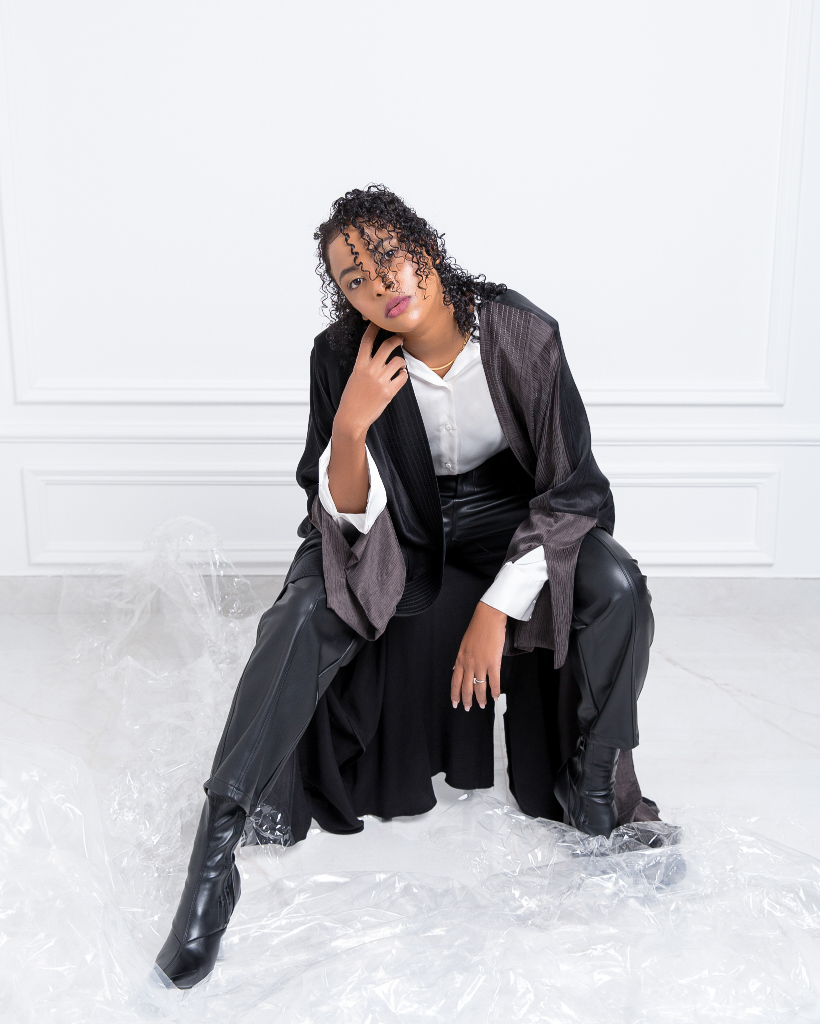 Full black abaya with white shine lines