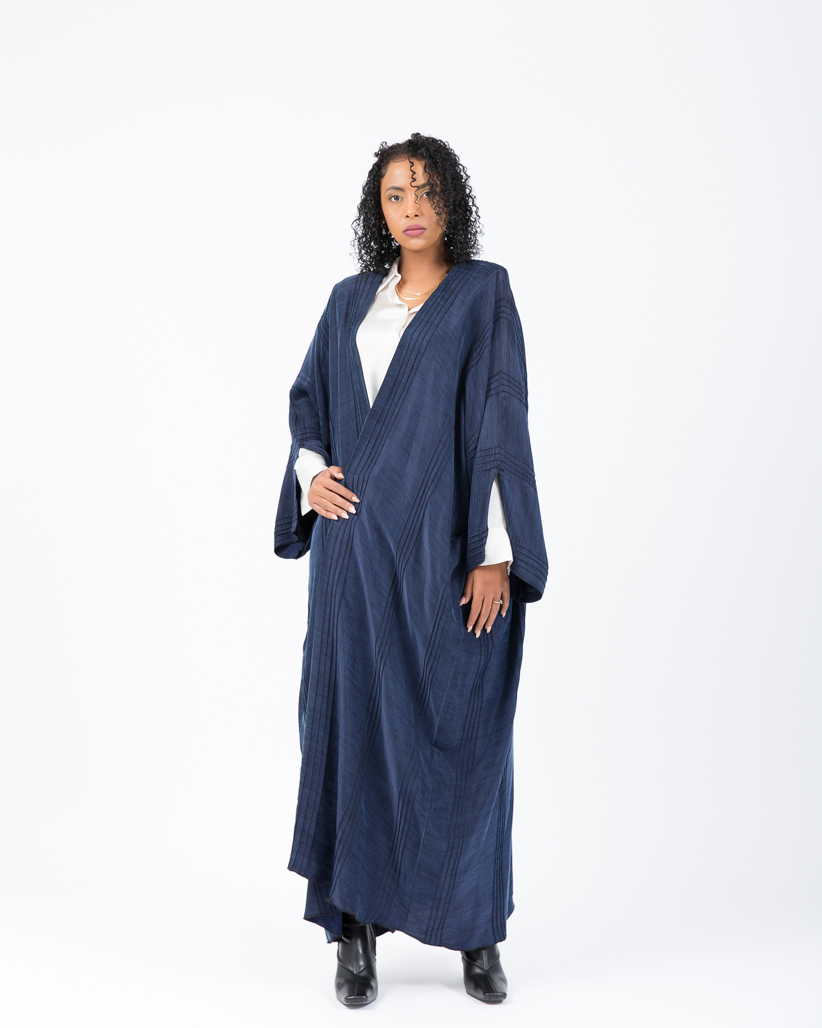Full Navy abaya with blue lines